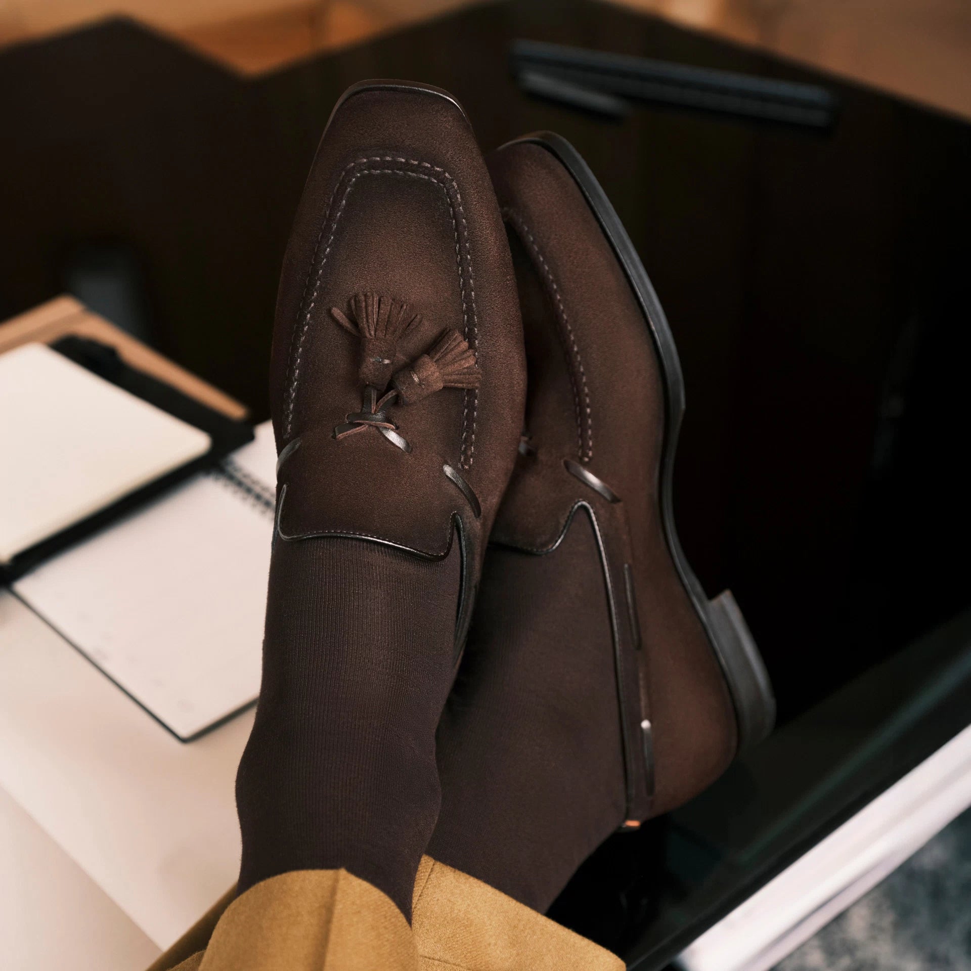 Dunkelblau Loafer Poliertem Leder Doppelschnalle